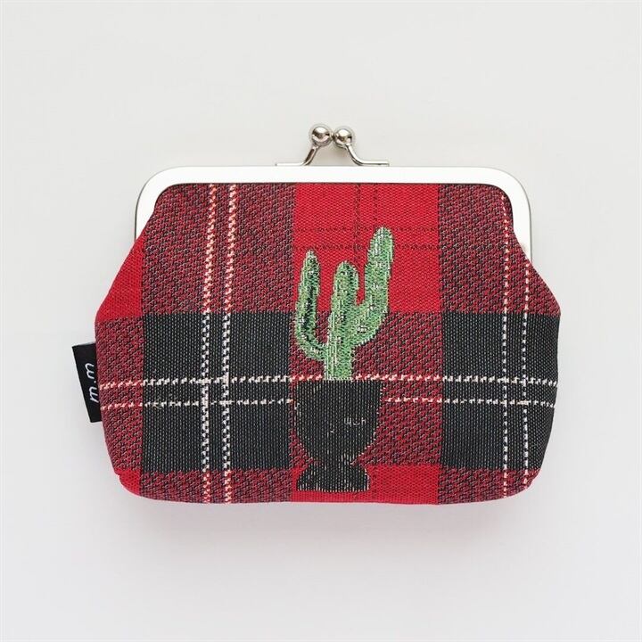【松尾ミユキ】ゴブラン織 ねこ柄 チェック がまぐちポーチ | Leo | red