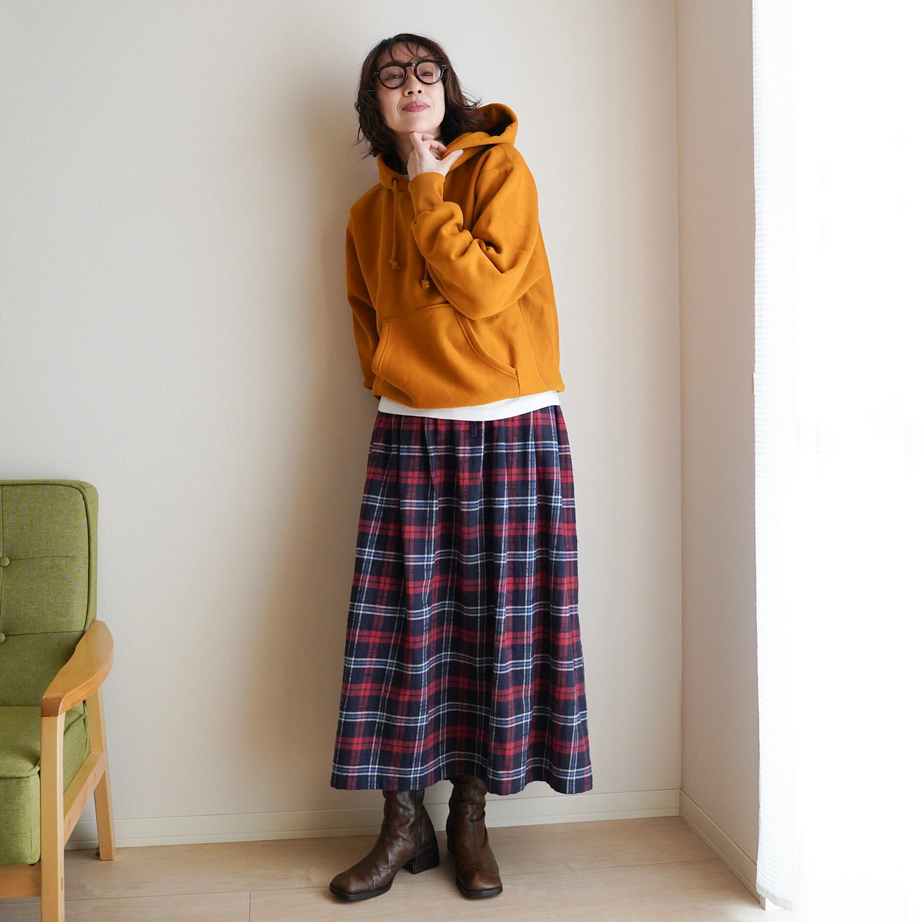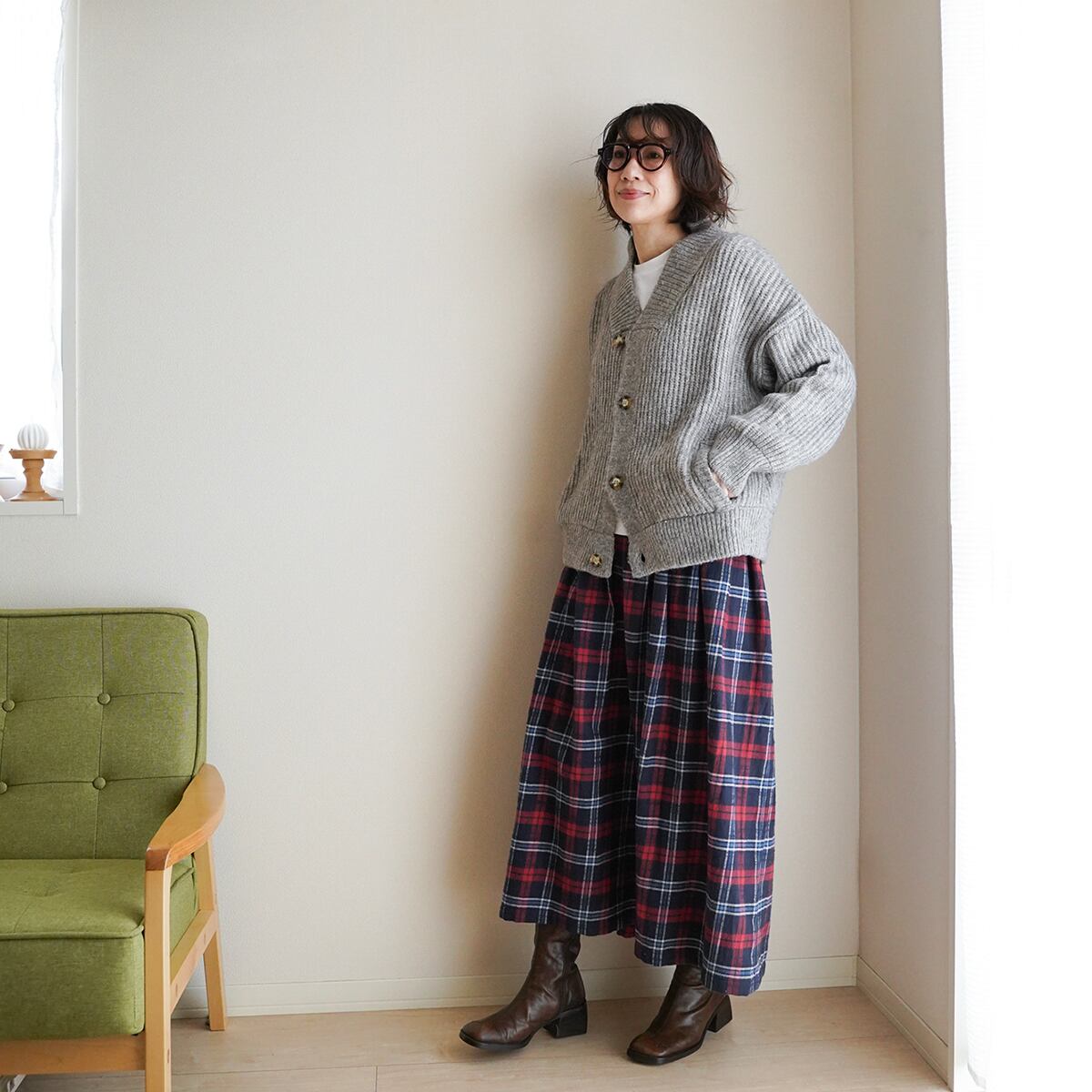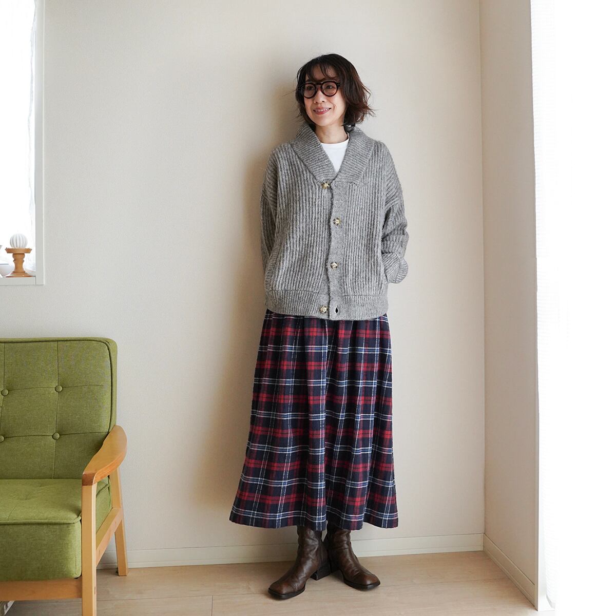あたたかみのあるタータンチェック ギャザースカート