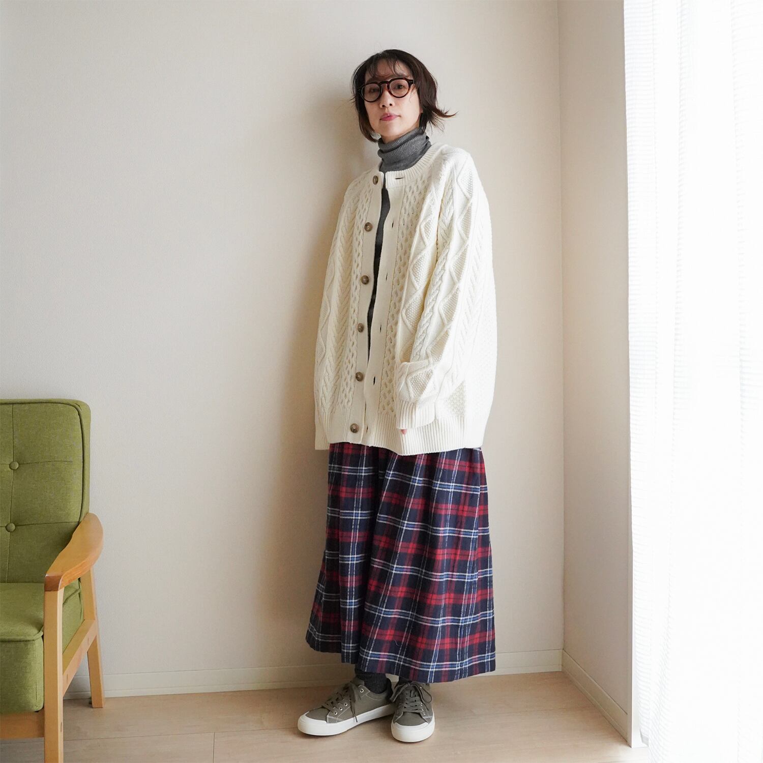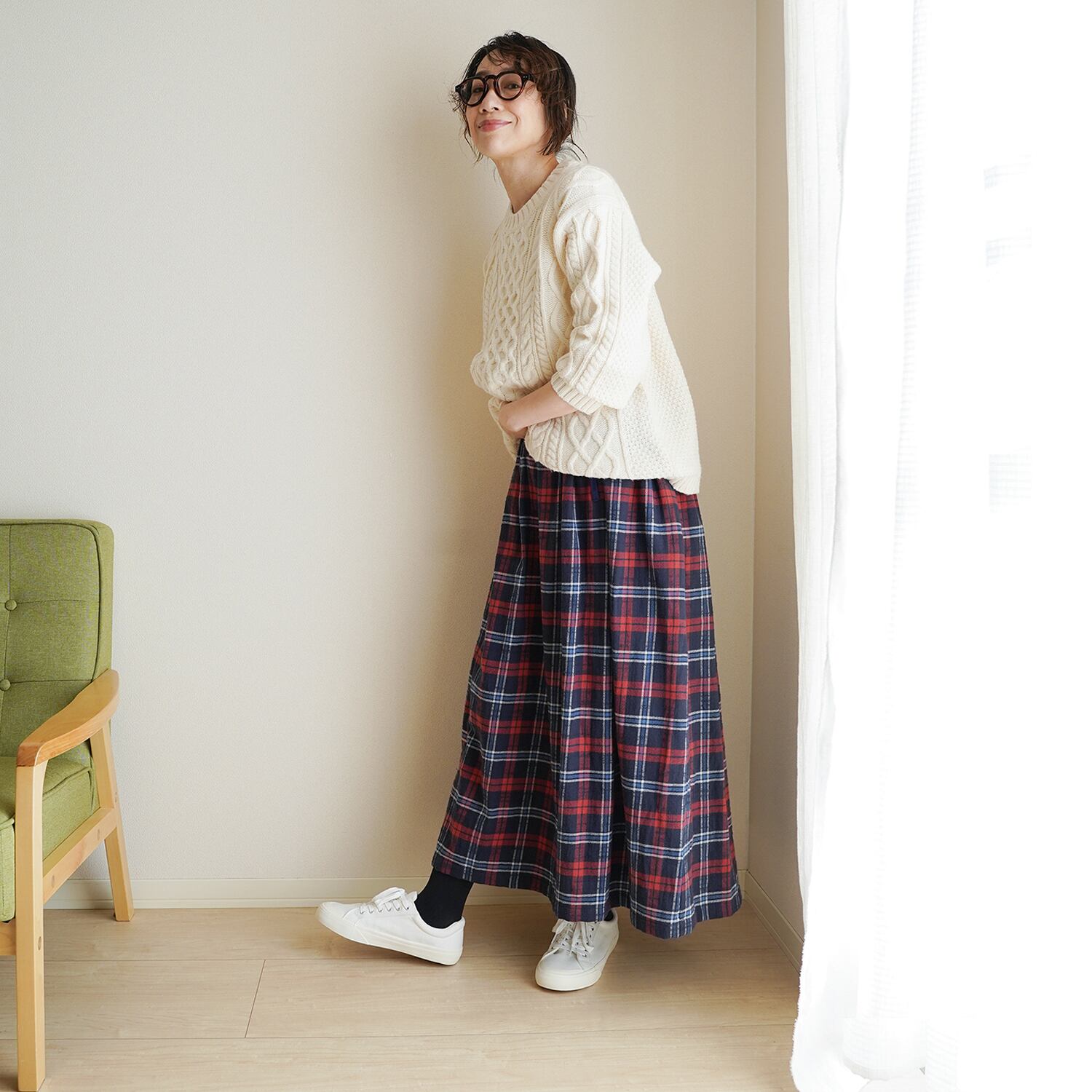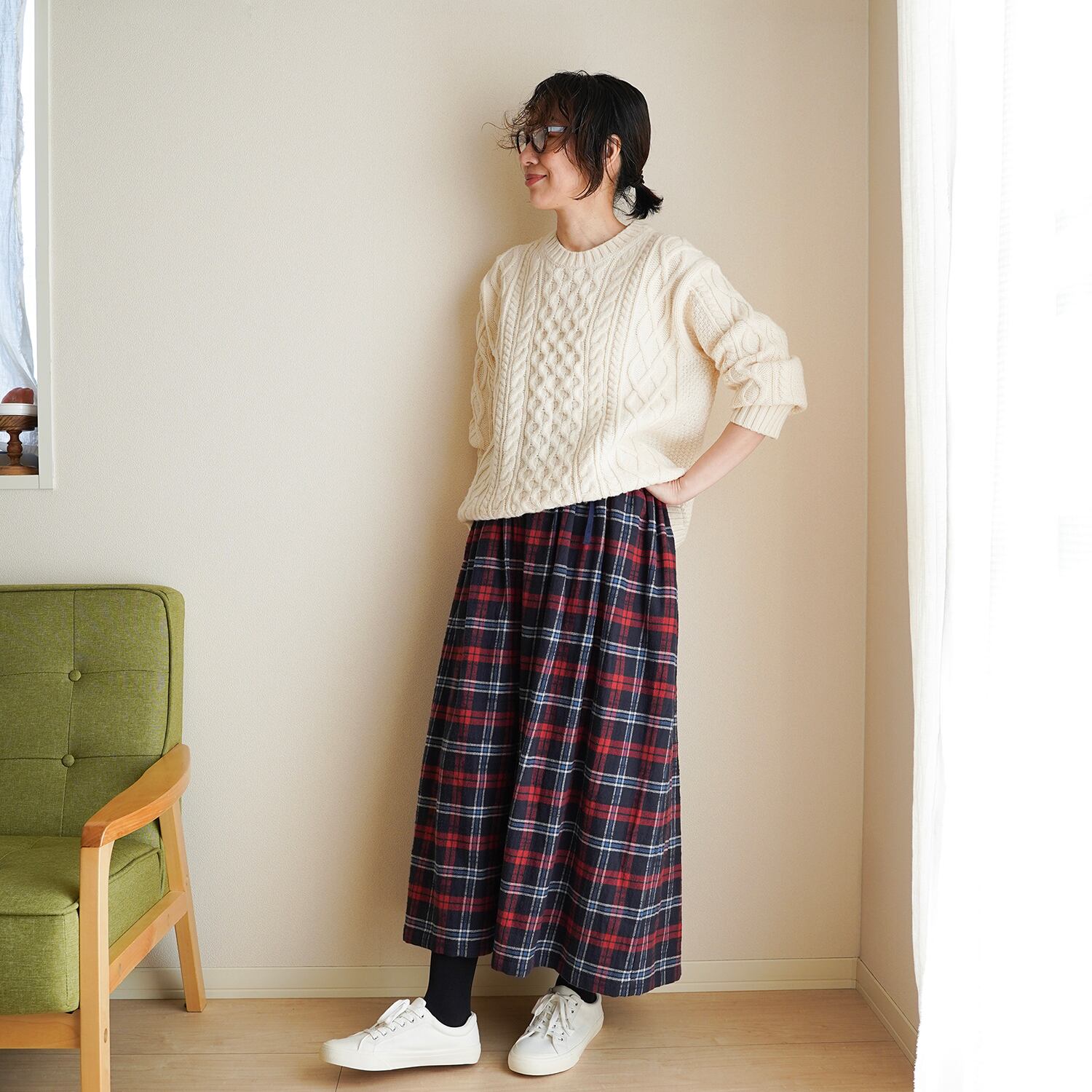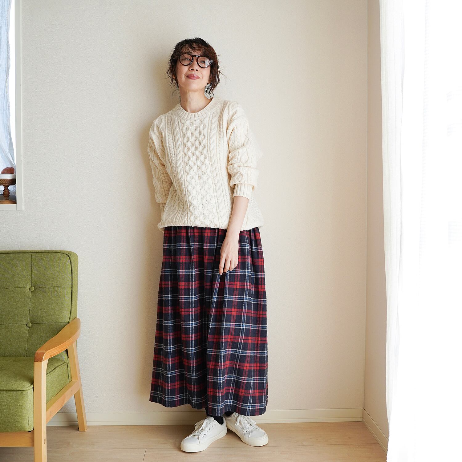 あたたかみのあるタータンチェック ギャザースカート