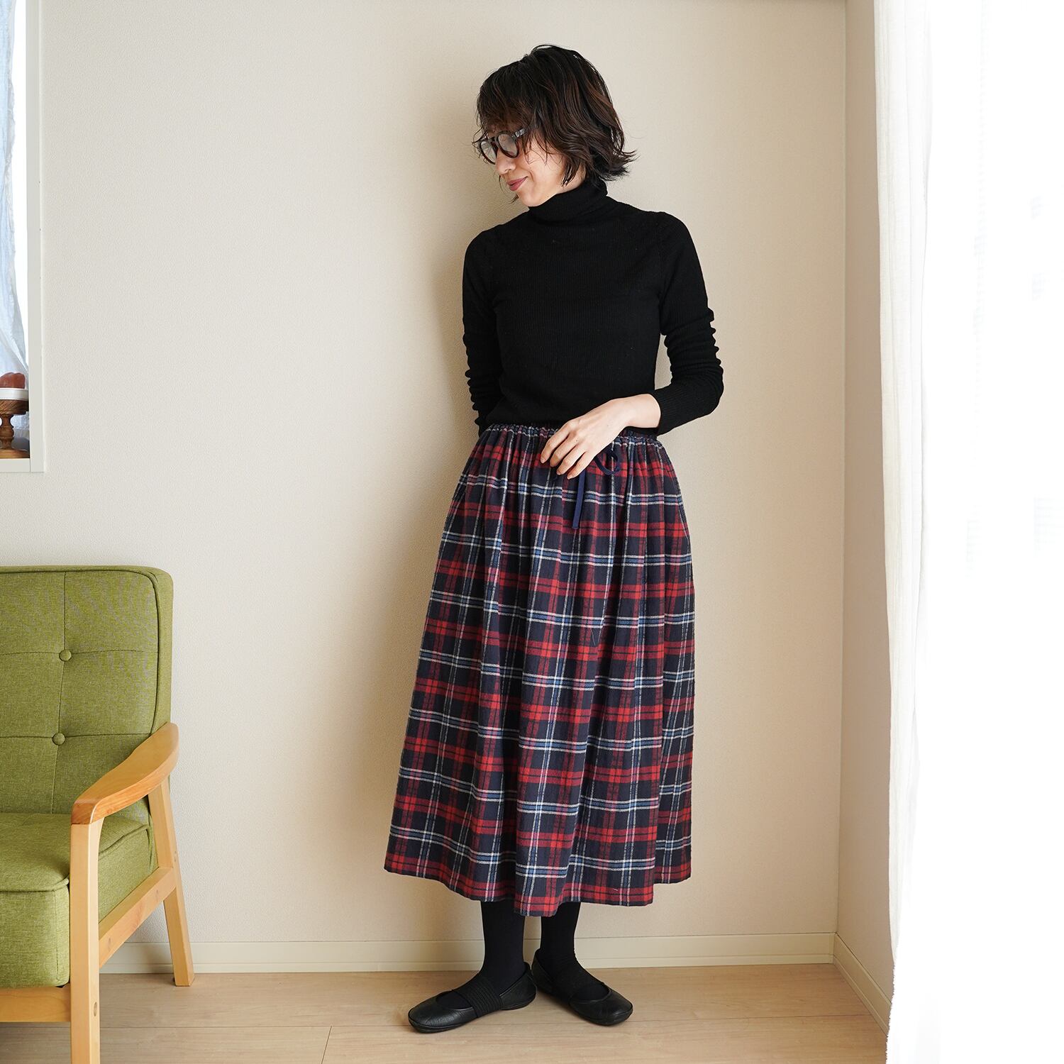 普段使いから特別な日まで幅広く活躍する、ネル素材のタータンチェックのギャザースカートです。肌触りの良いネル生地は柔らかく温かみがある雰囲気。ネルと言ってもさりげない微起毛ですので、秋から春先まで愛用いただけます。