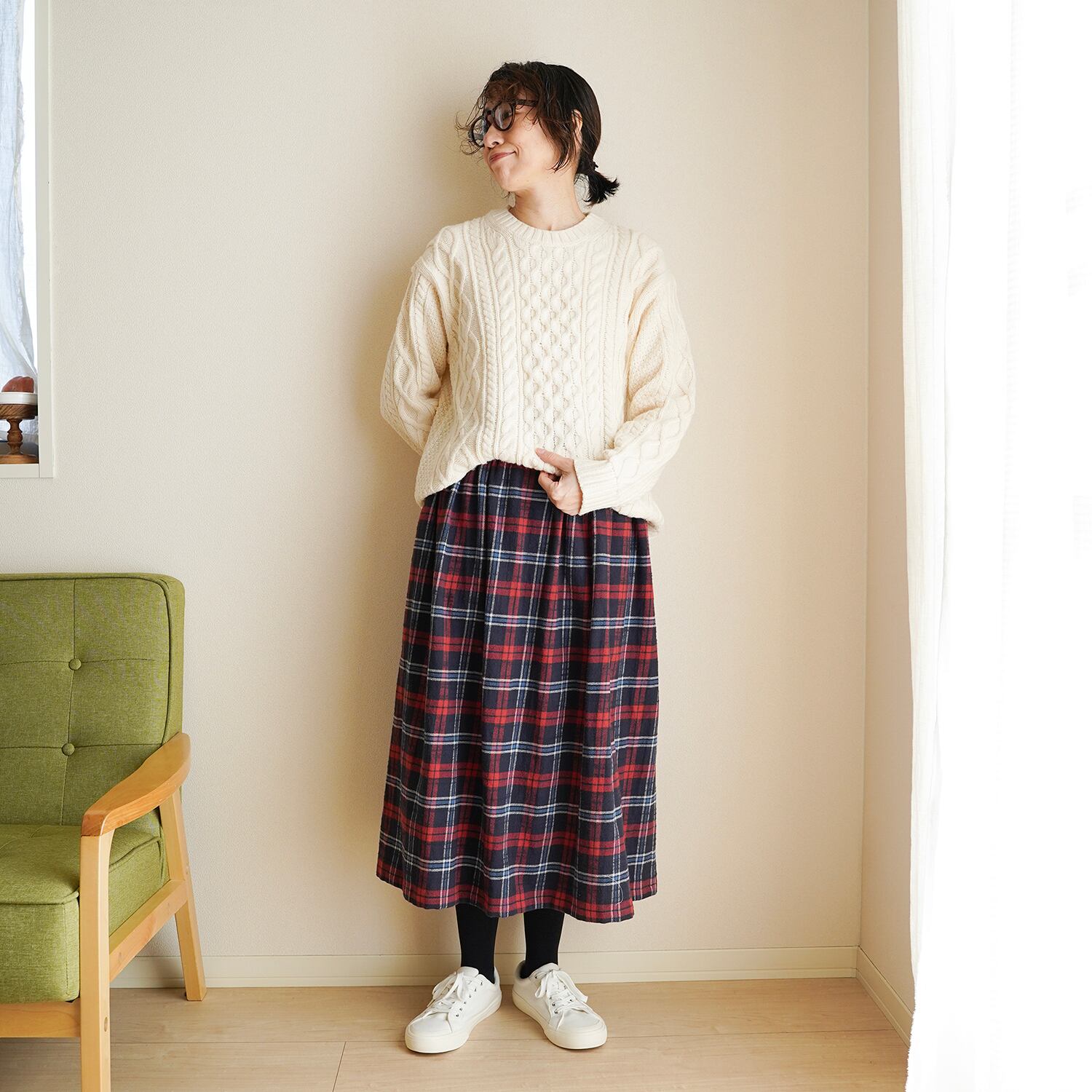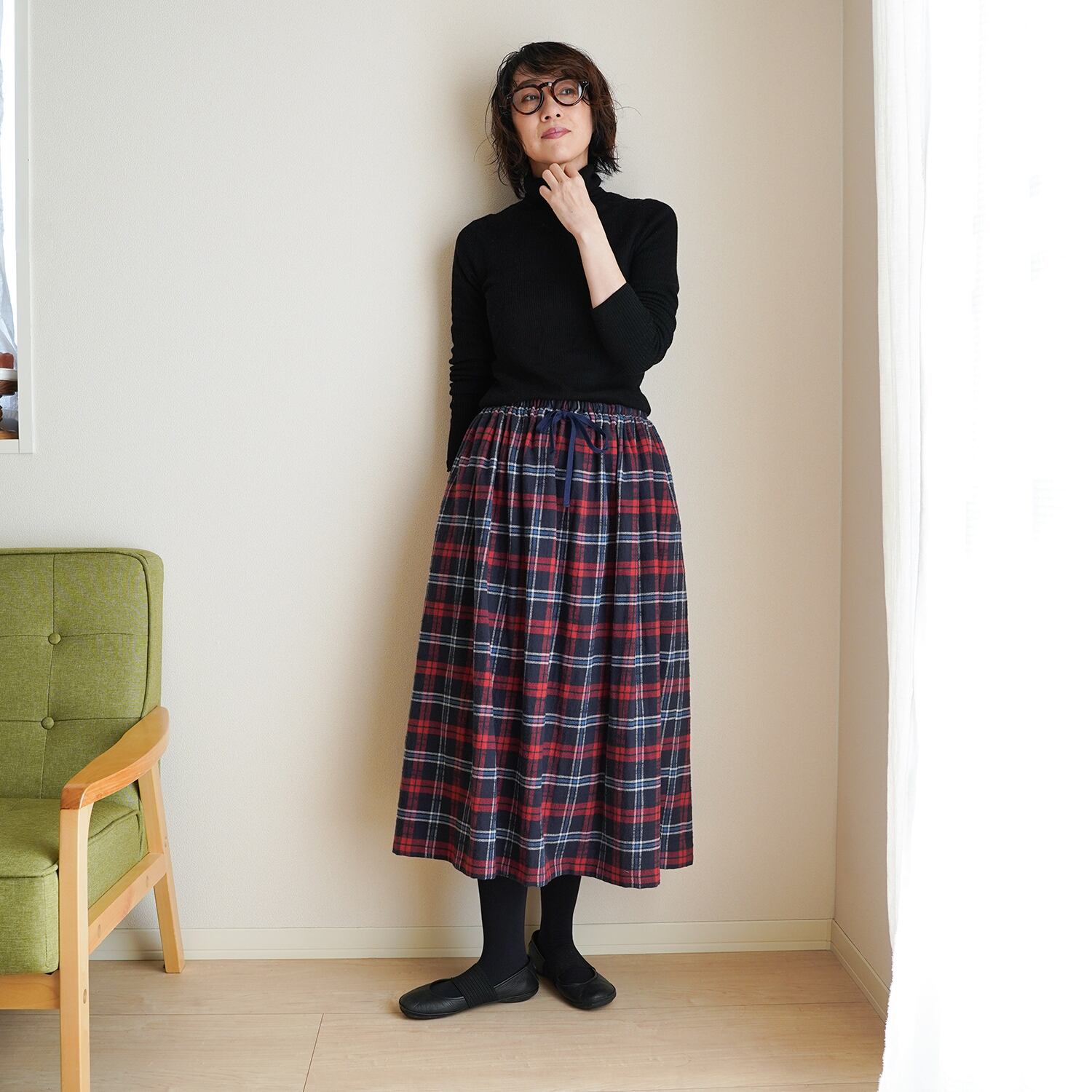 ネル素材のタータンチェック ギャザーロングスカート 総丈80cm