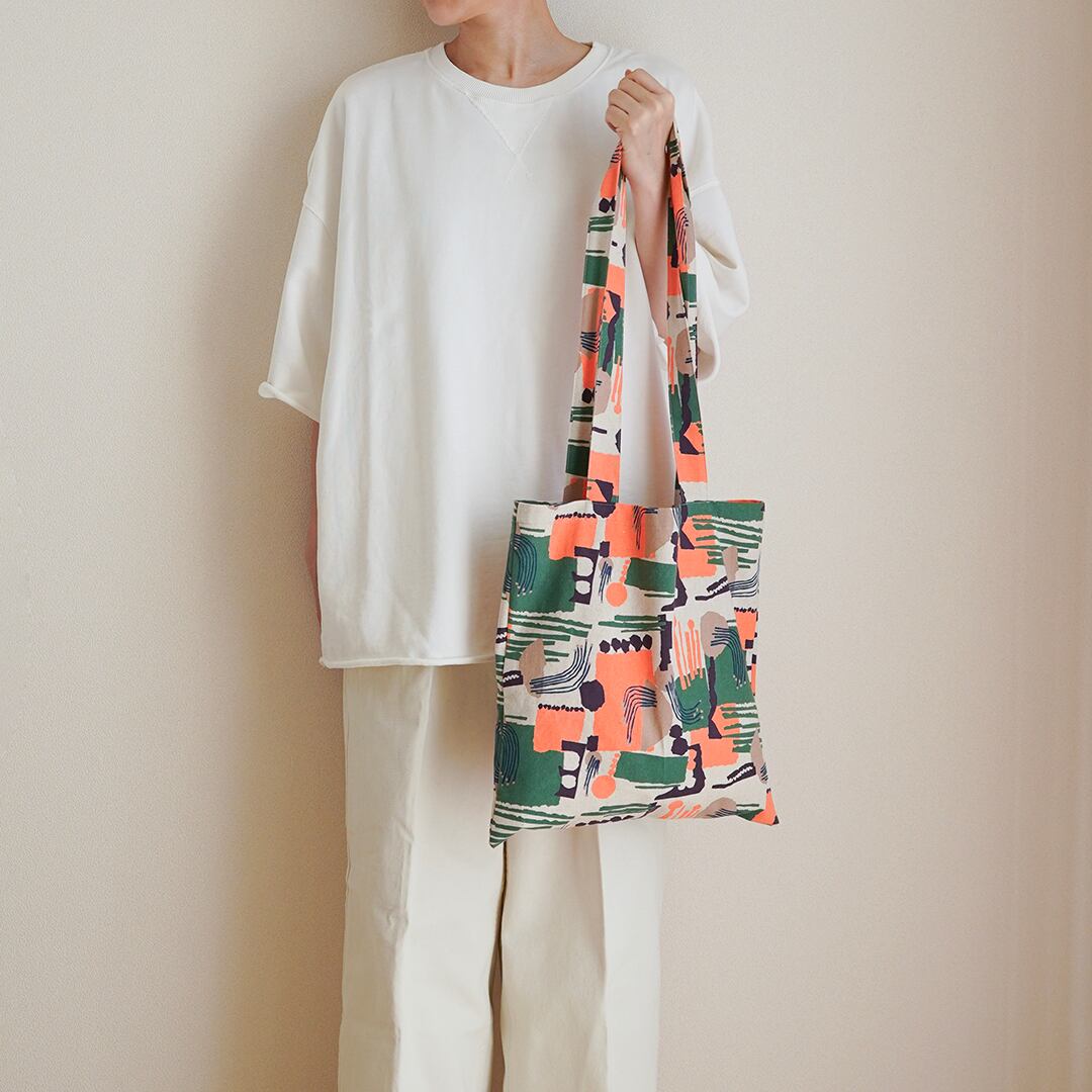 ぺたんこ正方形トート | 蛍光プリント・オレンジ