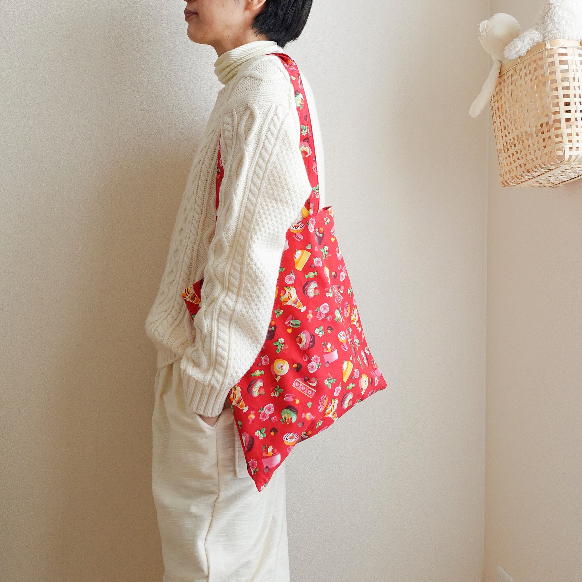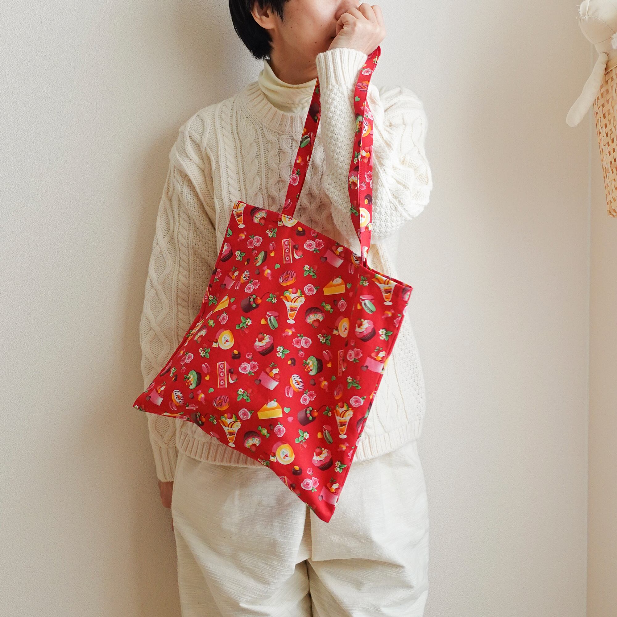 見た目のバランスのかわいさ、遊びゴコロ優先でつくったぺたんこトートです。